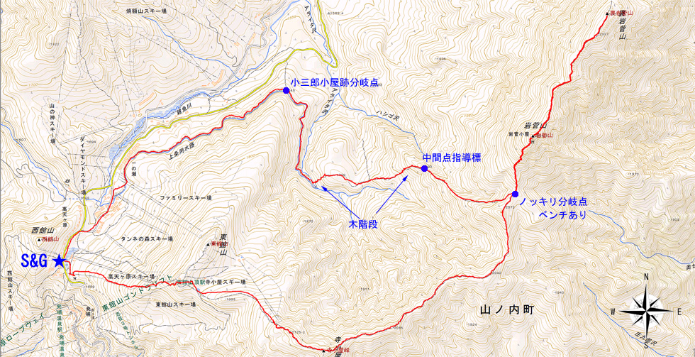 ノッキリ分岐点〜一ノ瀬スキー場経由下山編 | ||||