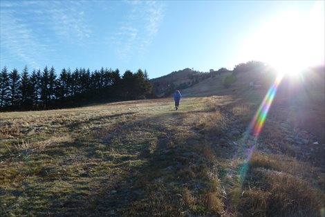 高天ヶ原スキー場ゲレンデを登り込むが見た目以上の勾配で汗が噴き出す | ||||