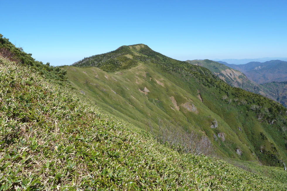 谷川岳主脈に似た笹原が裏岩菅山まで続く | ||||