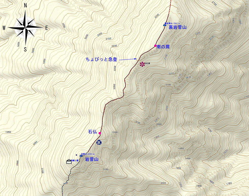 裏岩菅山「南の肩」へのチョビット急登地点 | ||||