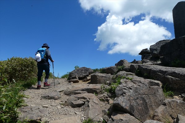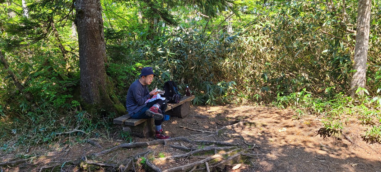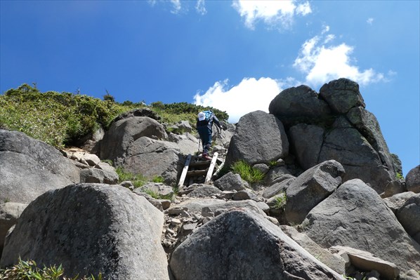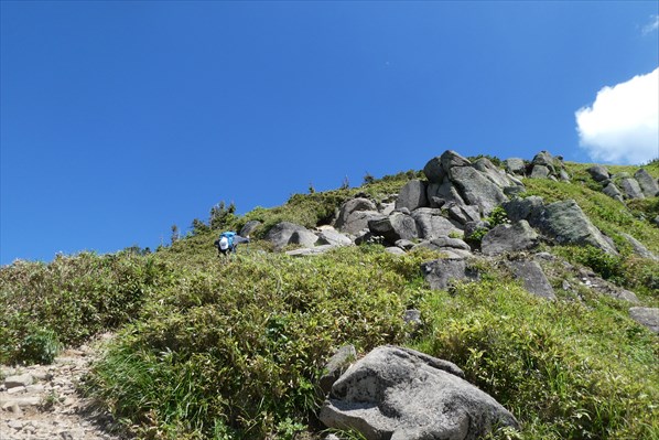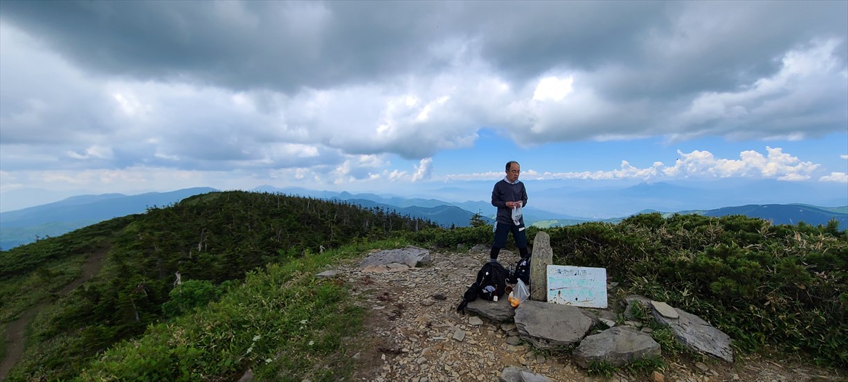 酷暑にやられ熱中症寸前の信ちゃん、休憩をとっても体調が芳しくない場合はここで下山を視野にいれる! 熱中症というよりシャリバテの気配濃厚! 30分休憩後、信ちゃんの意思で先ずは岩菅山を目指すことに (^O^)v |