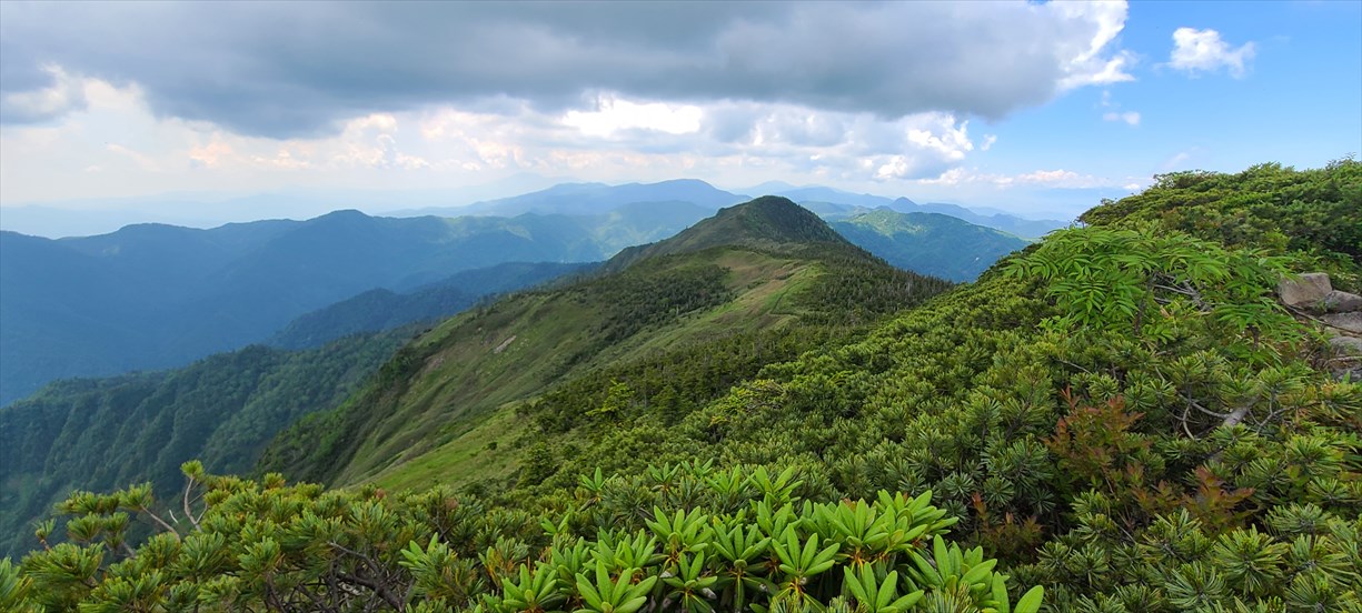 裏岩菅山から秋山郷切明温泉への稜線 | ||||