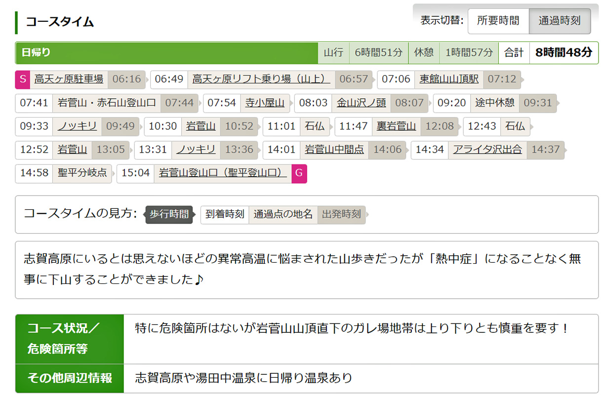 《岩菅山&裏岩菅山コースタイム他》 写真撮影時間20分〜100分含む |
