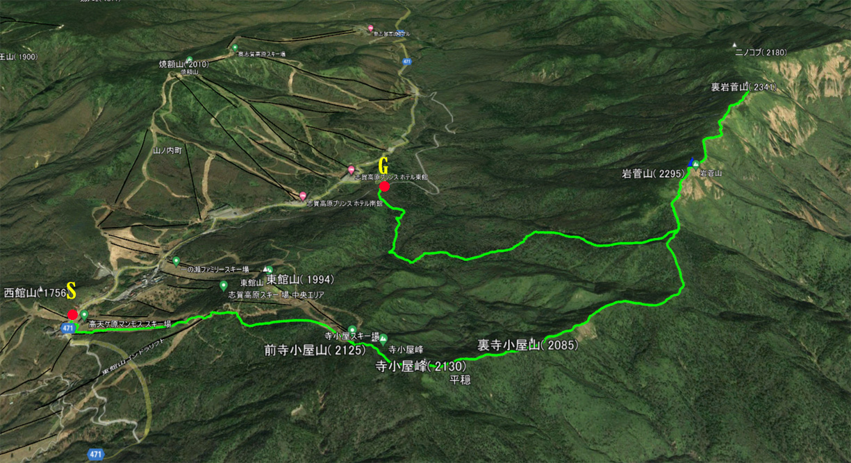 岩菅山&裏岩菅山鳥瞰図 ヤマレコ⇒https://www.yamareco.com/modules/yamareco/detail-4459640.html |