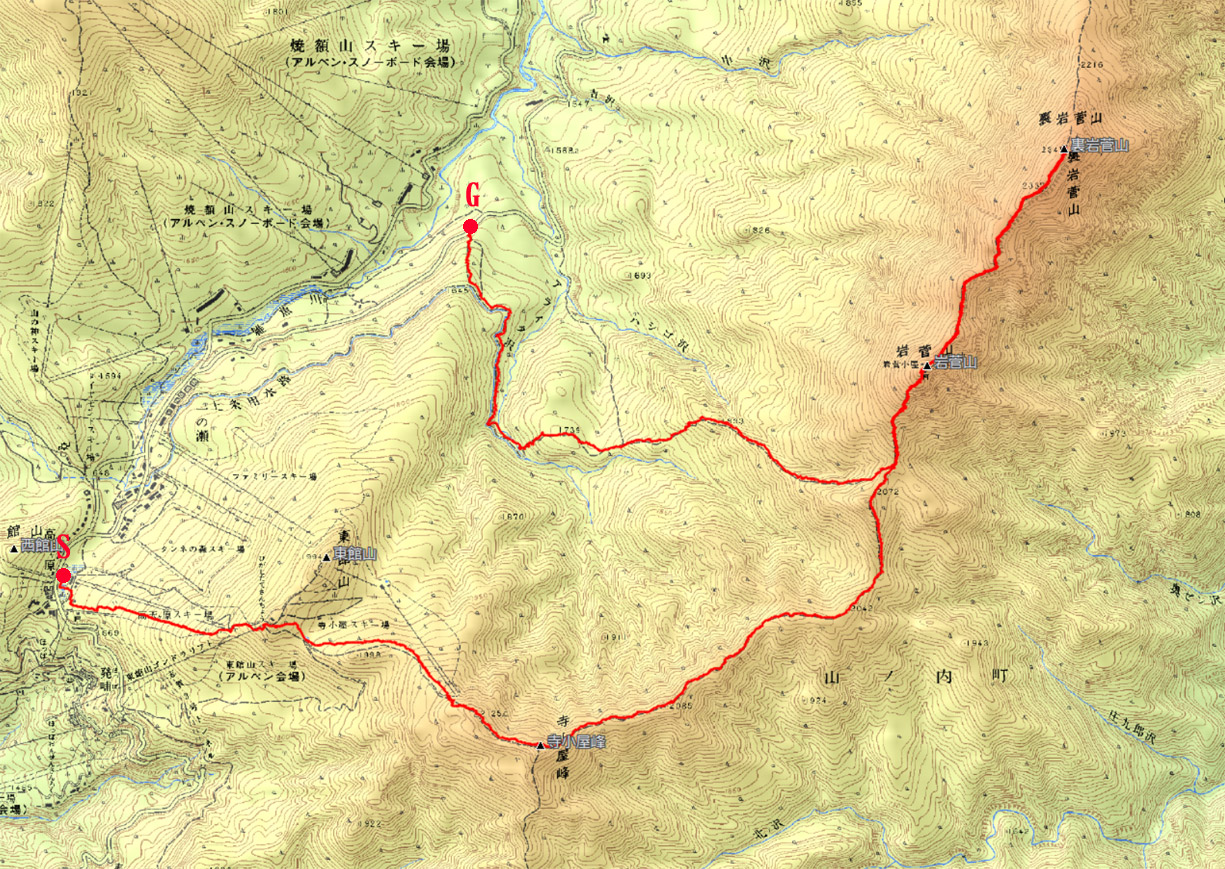 岩菅山&裏岩菅山ルート地図 (計曲線 50M 主曲線 10M) |