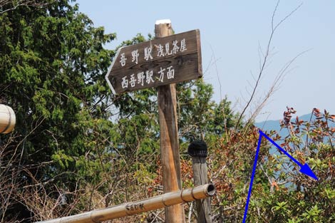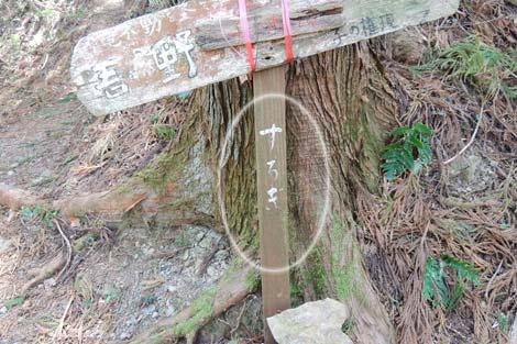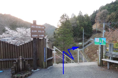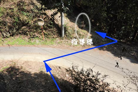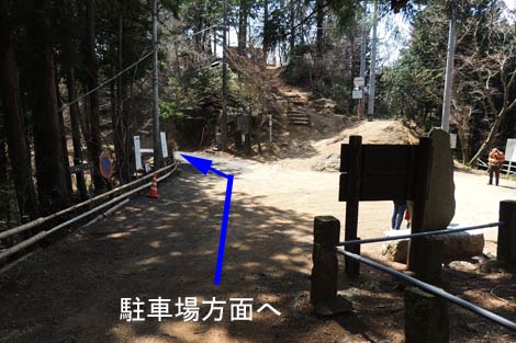 子ノ権現・売店を通過後、大型バス駐車場方面へ | 駐車場下カーブ手前にあるこの指導標で右折 | |||