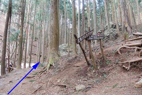 馬頭尊/ここから登山道になる | 実谷の二又分岐点 | |||
