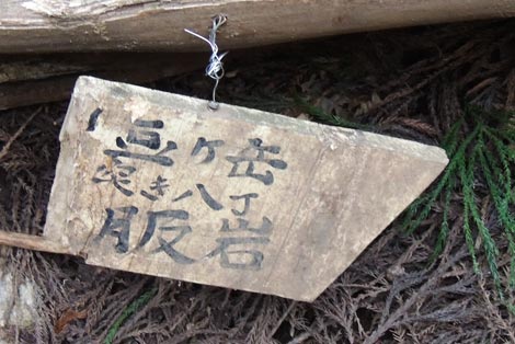 蹴っ飛ばせば無くなりそうな指導標だが有りがたい♪ 車道を200mほど下った左に前坂指導標あり |
