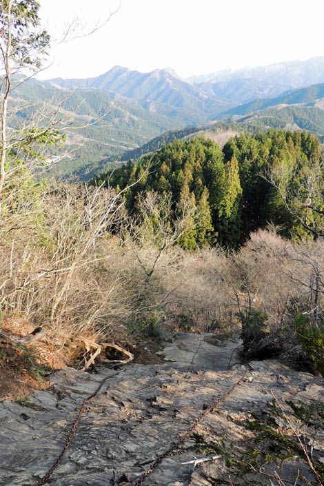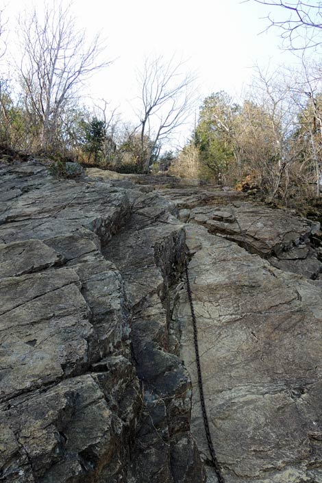 男坂・鎖が二本架けられているが雨降りでないかぎり三点確保で登れそうだ | ||||