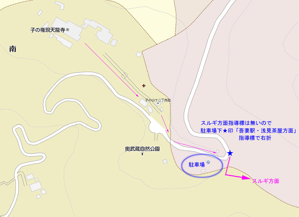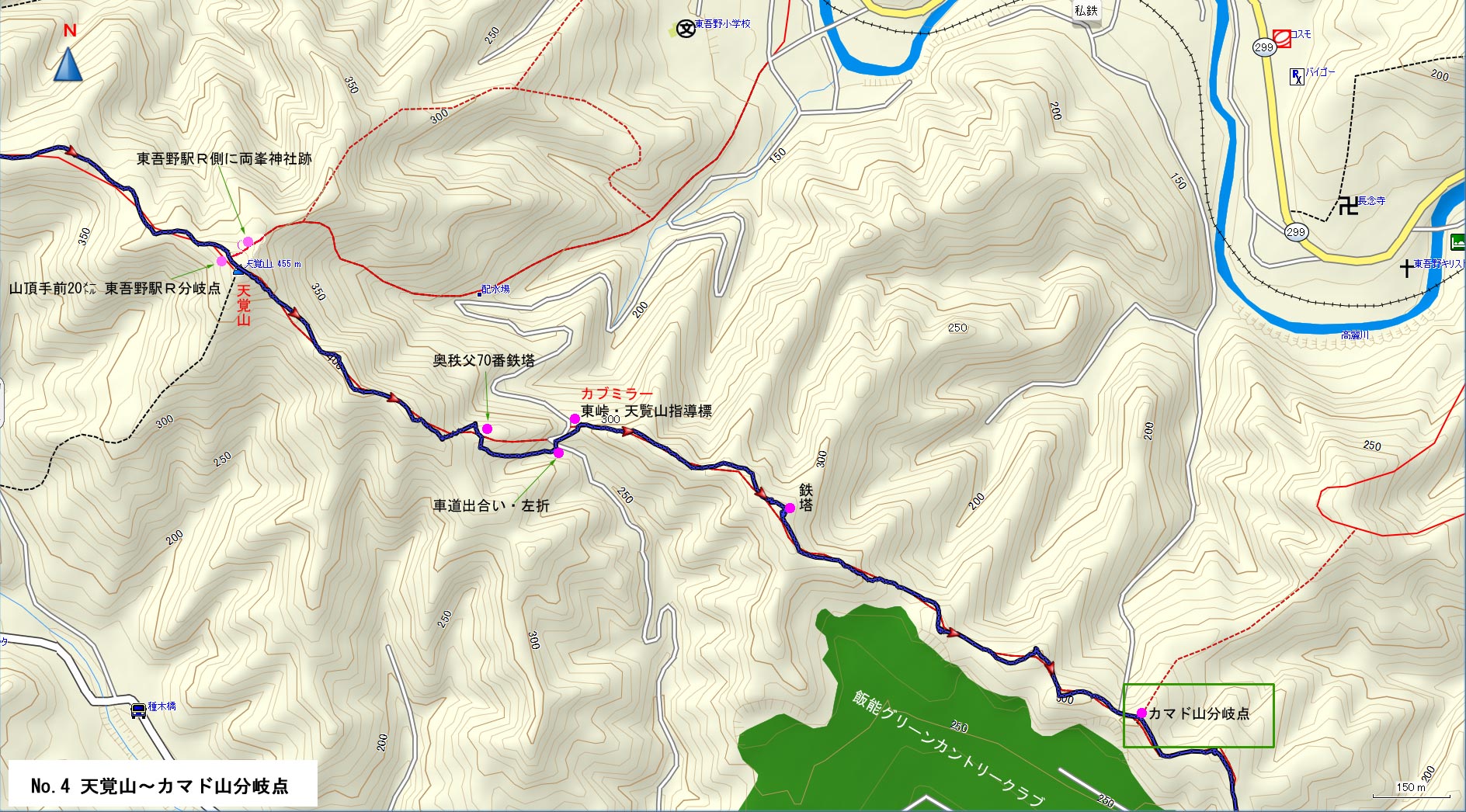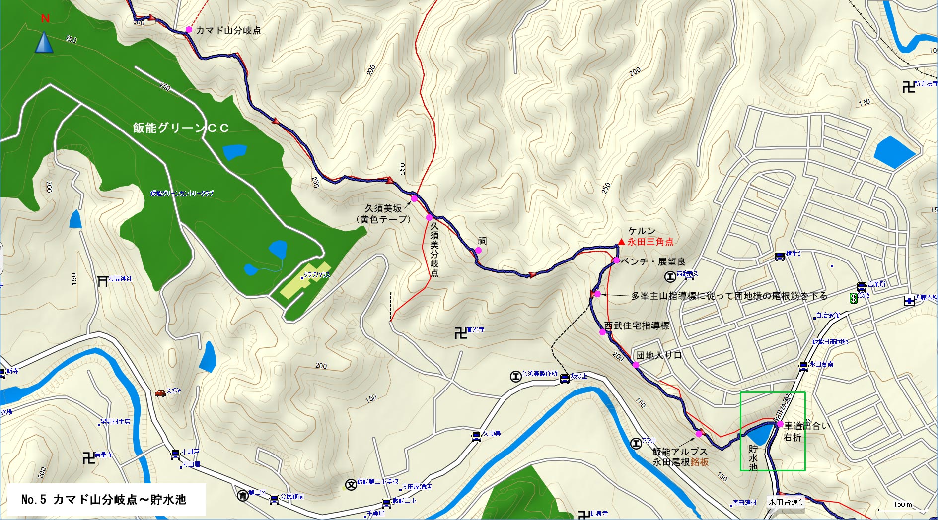 飯能グリーンCCを右手に見ながら進む | カマド山分岐点 | |||