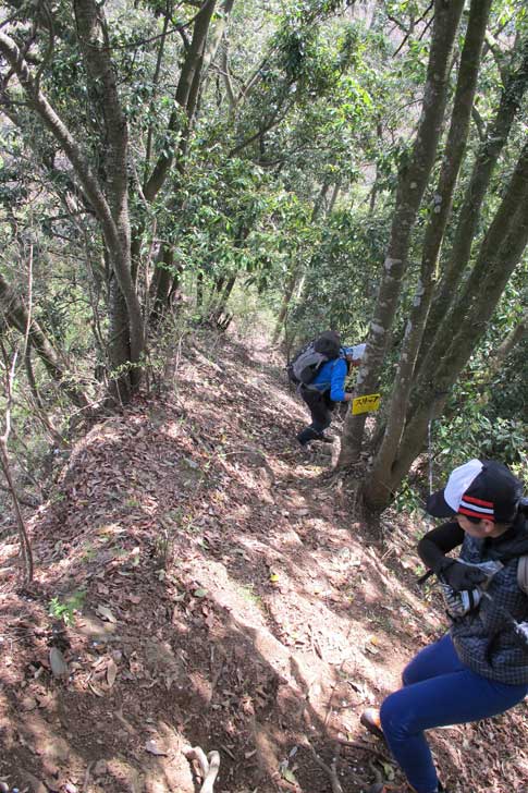 多峯主山指導標に従い永田尾根筋を歩く | 左側に団地を見ながら尾根を下る | |||