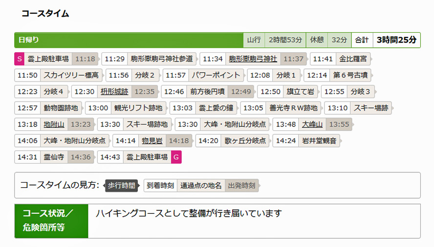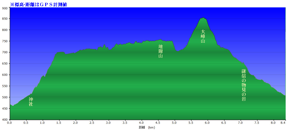 大峰山へ登り応えあり! ※高低図参照 | ||||