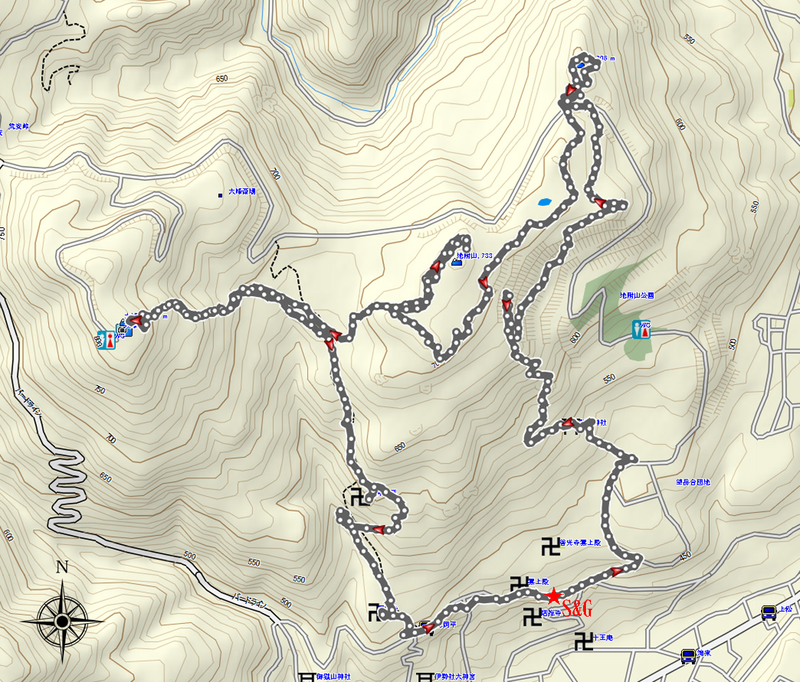 地附山&大峰山ルート地図 (計曲線 50M 主曲線 10M) |