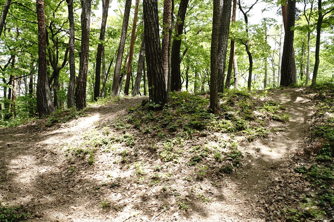 緩い坂道歩き(旧バードライン) | 駒形嶽駒弓神社参道入り口 | |||