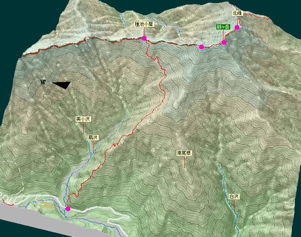 ★行程&所要時間 長野発 05:00 〜 扇沢手前の爺ヶ岳駐車場着 06:15 (トイレは扇沢駅のみ) 駐車場発 06:41 〜 柏原新道・登山口 06:45 (登山カード提出) 〜 八丁ベンチ 07:25 〜 ケルン 07:50 (小休) 〜 一枚岩 08:33 〜 石畳 08:53 (小休) 〜 ガレ場 09:25 〜 種池山荘 09:45 (大休) 種池山荘発 10:07 〜 爺ヶ岳南峰 10:43 (小休) 〜 爺ヶ岳・山頂着 11:14 (昼食) 爺ヶ岳・山頂発 12:10 〜 種池山荘 12:45 (大休) 〜 山荘発 13:05 〜 ガレ場 13:22 〜 石畳 13:43 〜 一枚岩 13:56 (小休) 〜 ケルン 14:30 〜 八丁ベンチ 14:42 (小休) 〜 柏原新道・登山口着 15:07 美ヶ原レピーター使用可(扇沢−山頂) ・ 430Mhz長野市と交信可(山頂) 先週の蝶ヶ岳・蝶の雪型、今回は爺ヶ岳・種まき爺さんと雪型に縁のある山が続きました。 下山後は「大町温泉郷・入浴料500円」で汗を流し、大町市内・横川商店で 「白馬錦大吟醸使用・酒ケーキ」1000円を買って帰路につく。 大町温泉郷のHP 横川商店のHP(い−ずら大町特産館・組合員紹介へ進む) |
