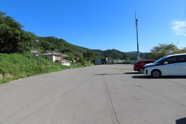 田沢温泉駐車場/右前方の建物は綺麗なトイレで24時間可 |