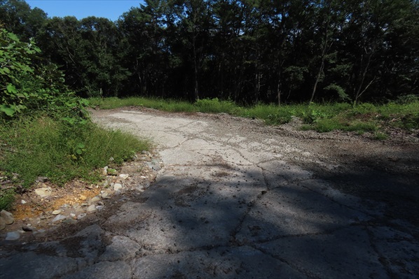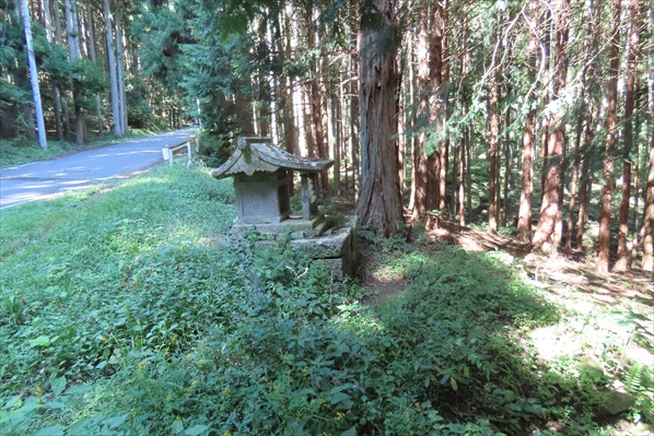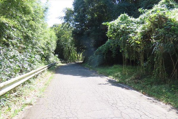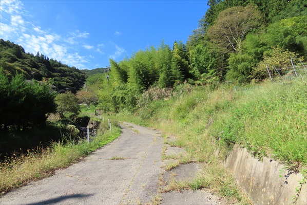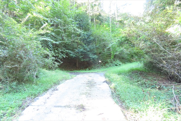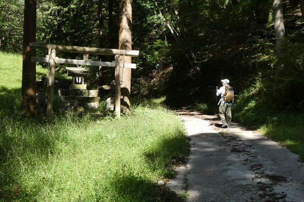 植林地帯終了場所が十観山登山口/以後は車道歩きとなる |