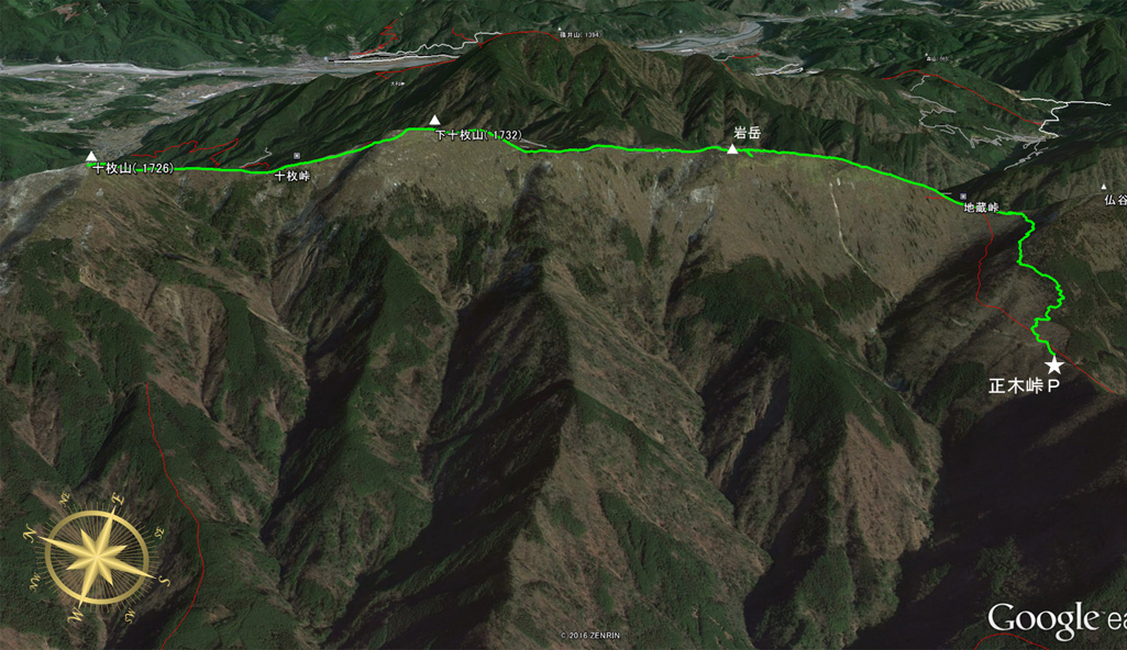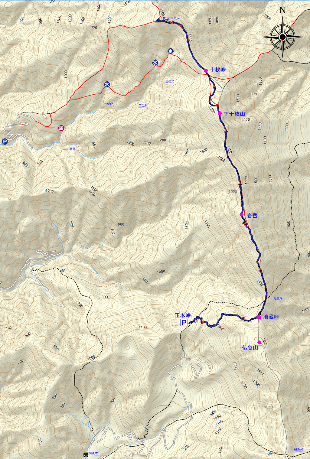 正木峠駐車場標高/1155m 標高差/577.4m 累積標高/1088m 総歩行距離/11087m |