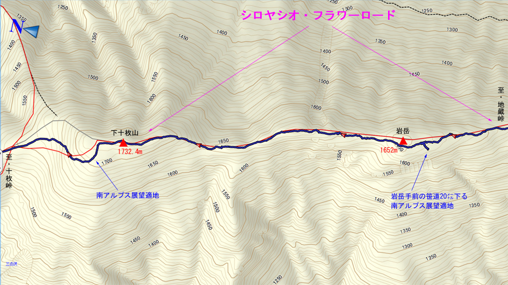 岩岳手前の南アルプス展望地(下段MAP参照) |