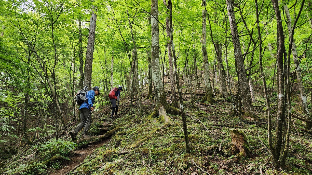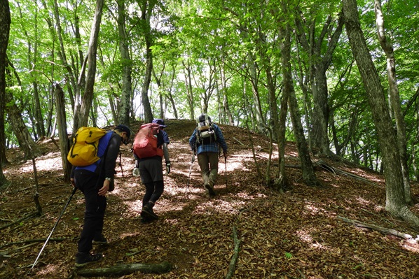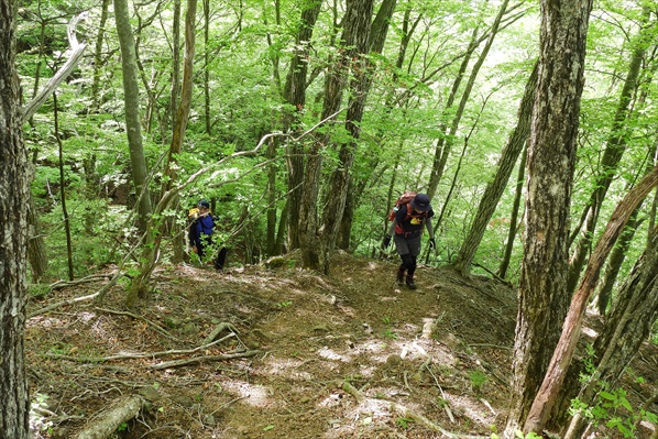 新緑と爽やかな風で快適な山歩きだが、、、 | ||||