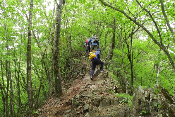 兜岩山〜ローソク岩〜星尾峠の稜線歩きではこのような場所が多いので慎重に歩きましょう | ||||