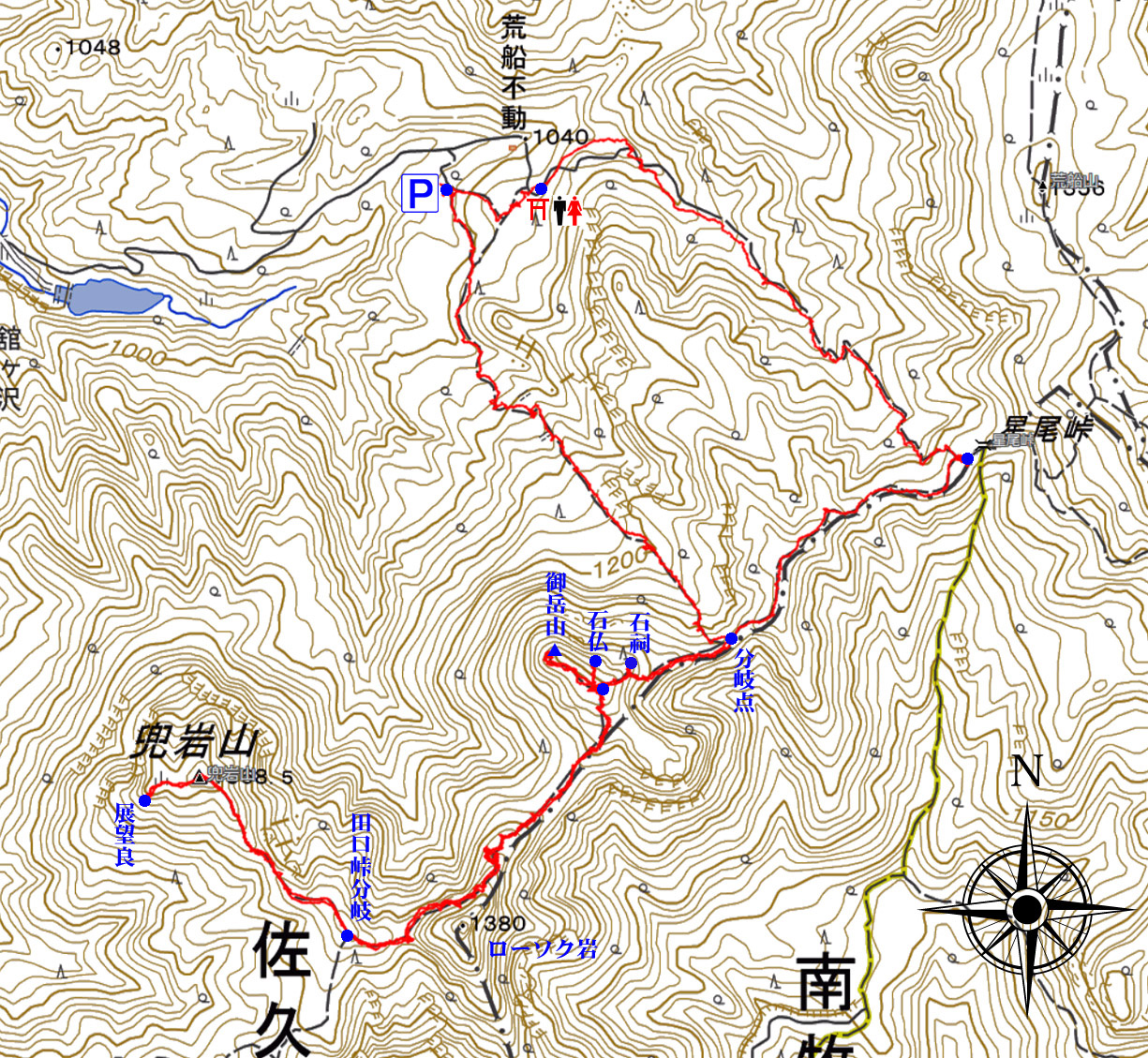 兜岩山ルート地図 (計曲線 50M 主曲線 10M) |
