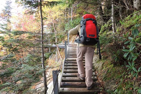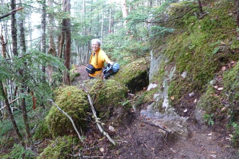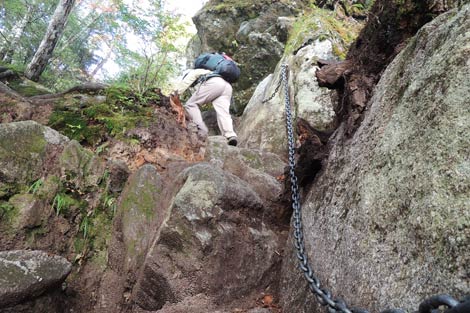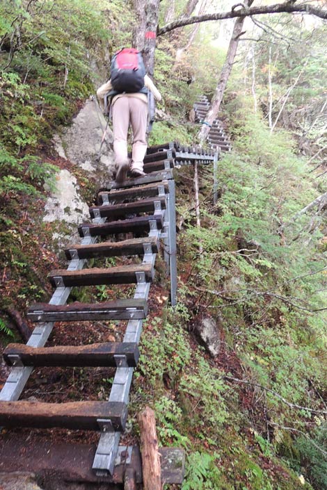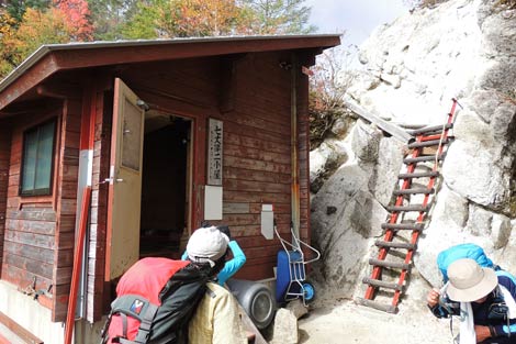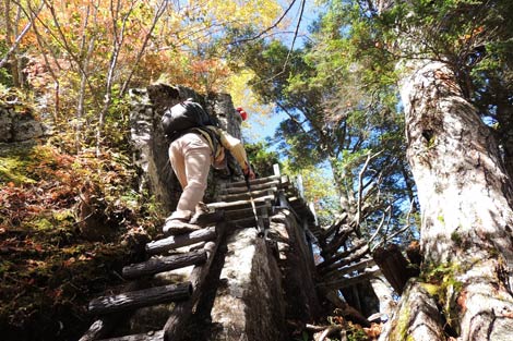 不動岩を通過後この垂直梯子を上れば七丈小屋が近い | ||||