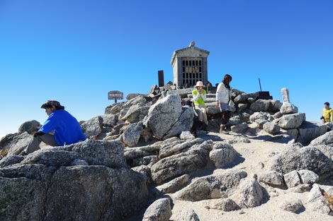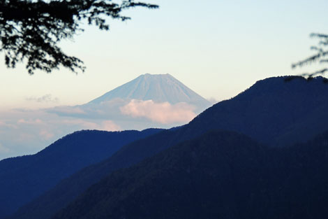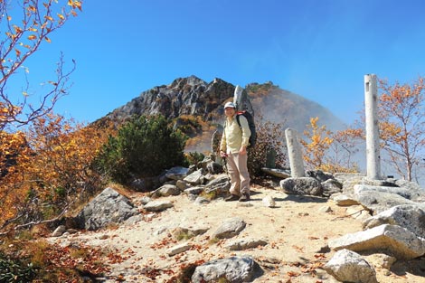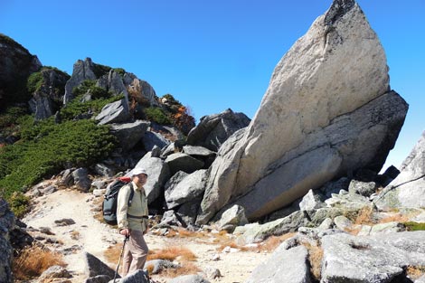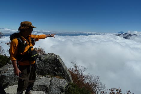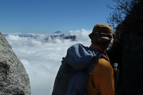 花崗岩地帯に点在する大岩 | 雲海に浮かぶ富士山に見とれる管理人 | |||