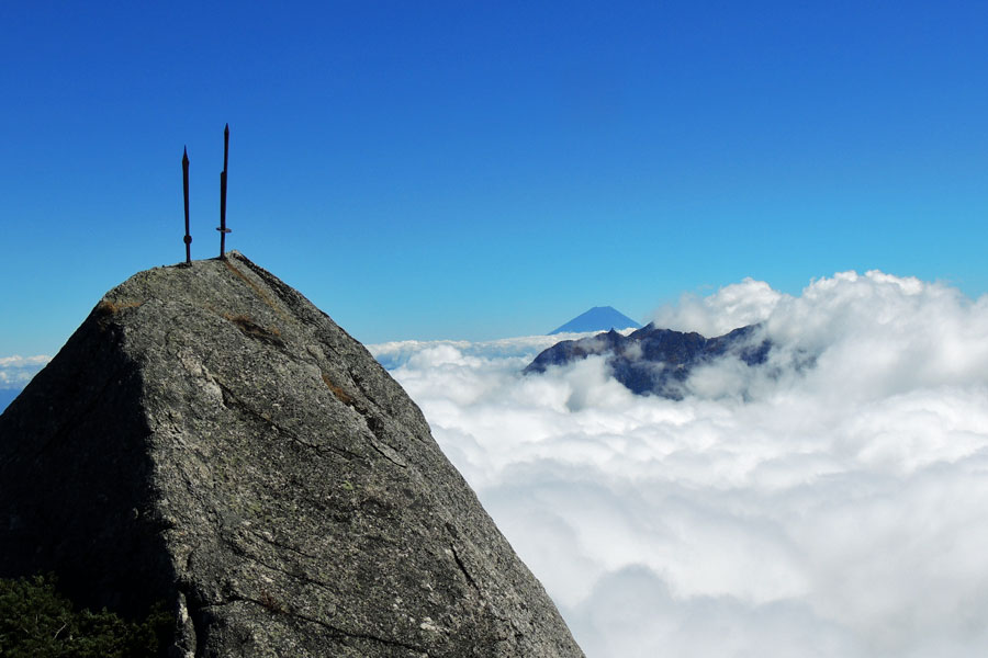 鳳凰三山のオベリスク(地蔵岩)&富士山 | 最後の急登を頑張れば・・・ | |||