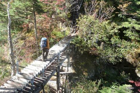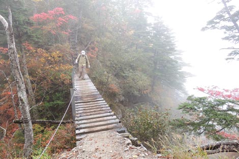 ほぼ垂直のクサリ場 | スカスカ木橋 | |||