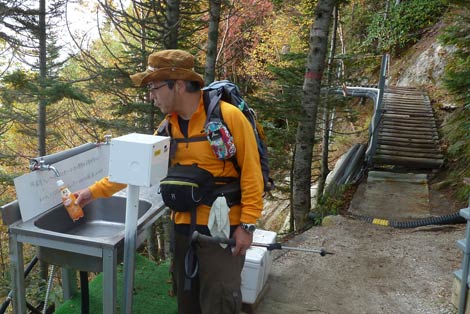 七丈小屋第二テント場 伊藤さん、そっちはルートじゃないっすよ! |