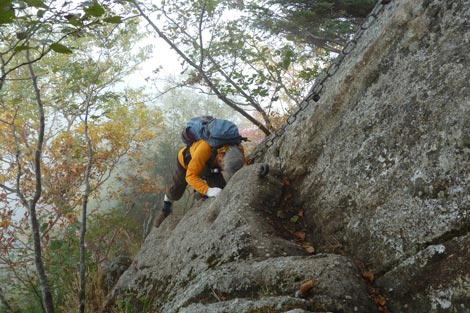 屏風岩の梯子を登る | |||