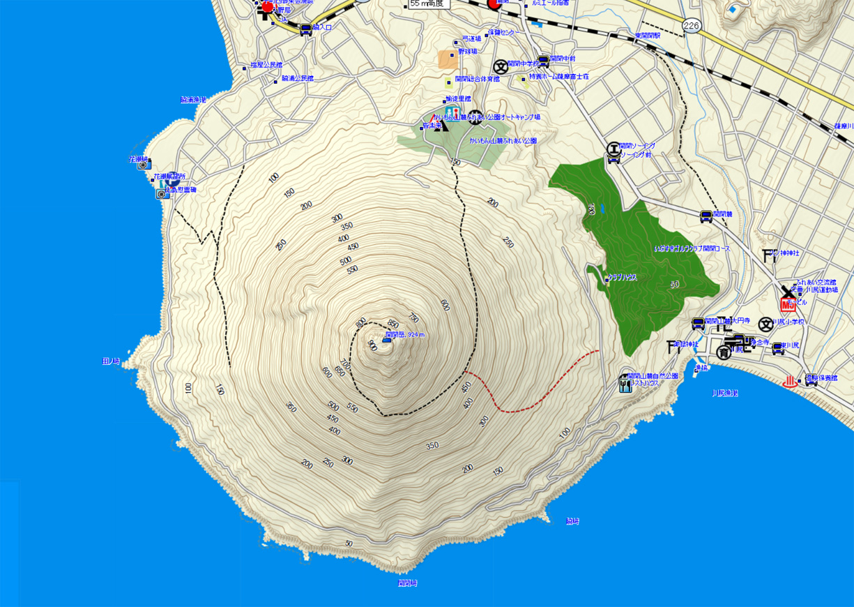 開聞岳ルート地図 (計曲線 50M 主曲線 10M) |