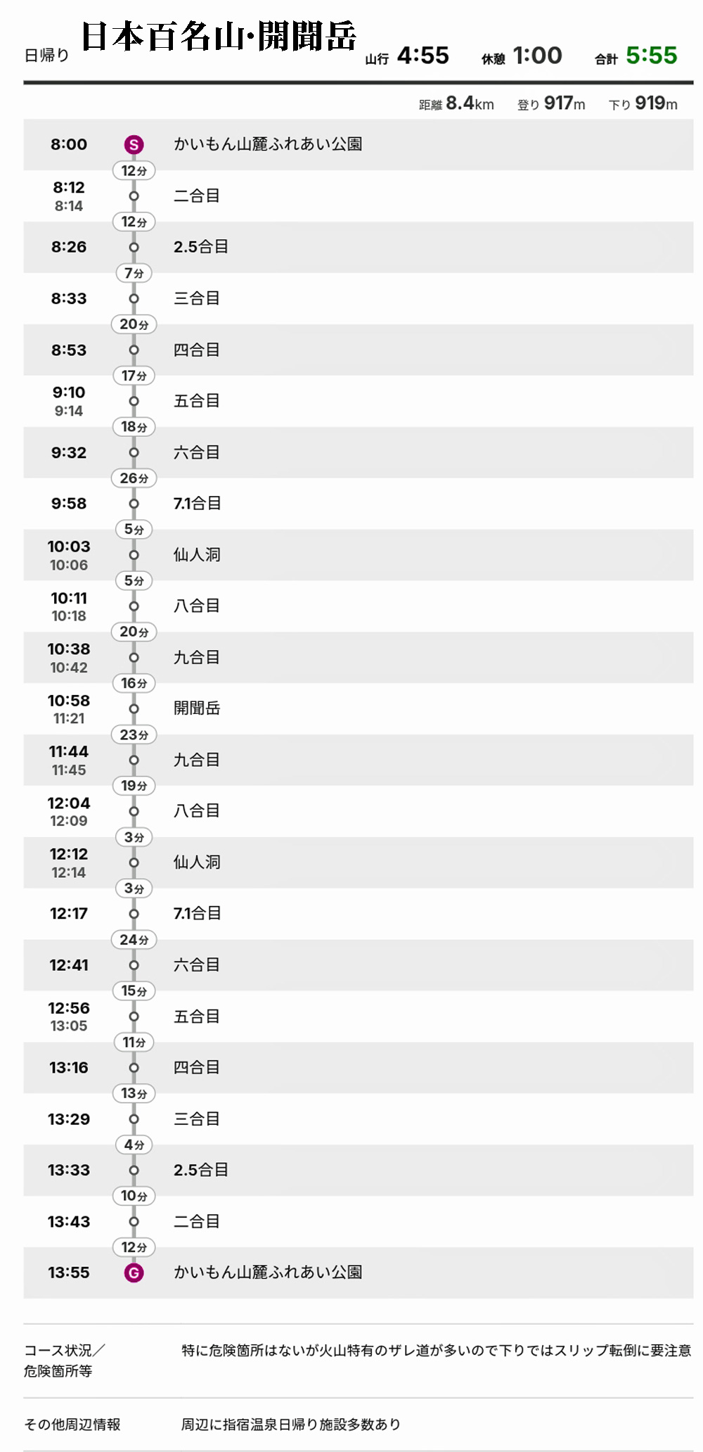 《開聞岳コースタイム他》 写真撮影時間20分〜100分含む |