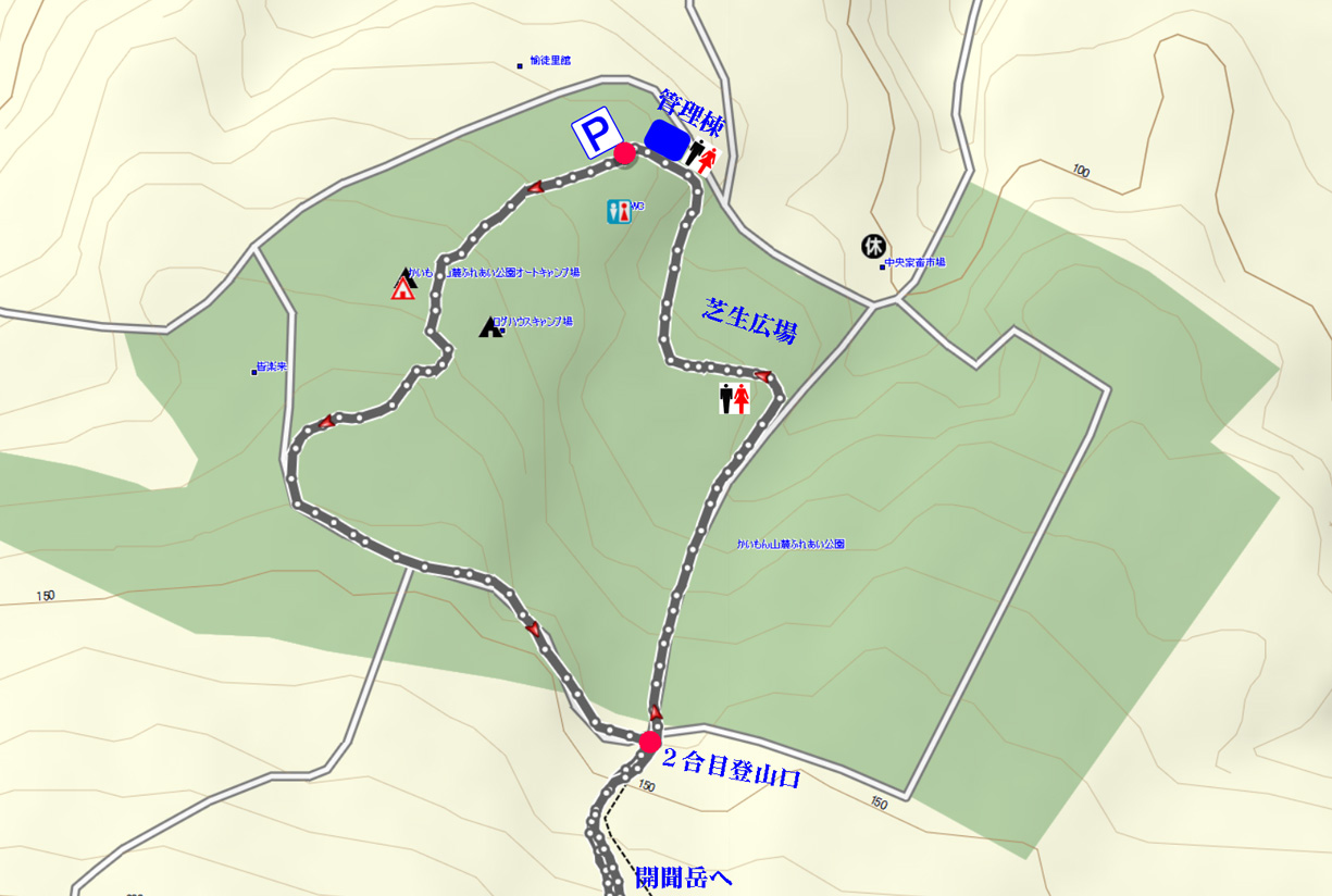 二合目登山口は芝生広場からが最短だが急坂なので下山時利用がオススメ | ||||