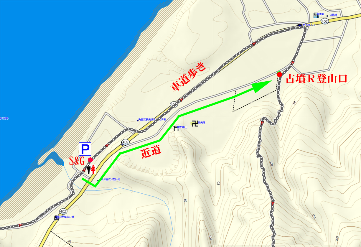 角田山ルート地図 (計曲線 50M 主曲線 10M) |