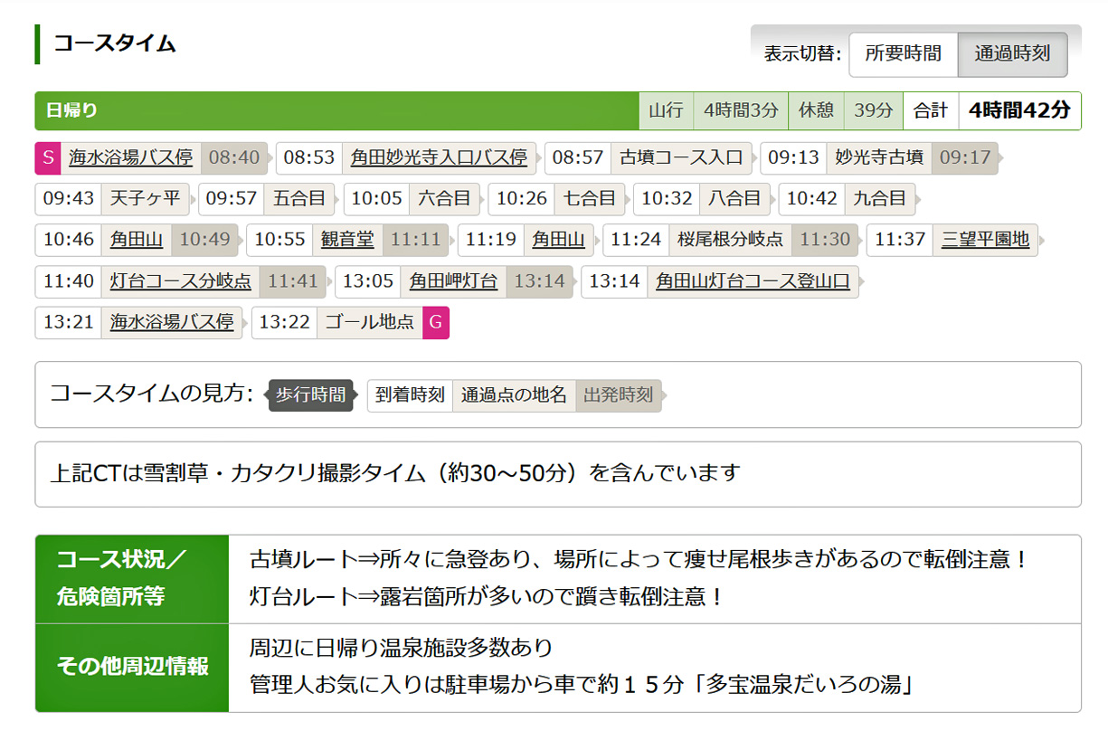 《角田山コースタイム他》 写真撮影時間20分〜100分含む |