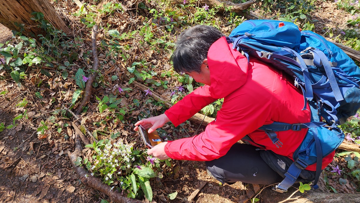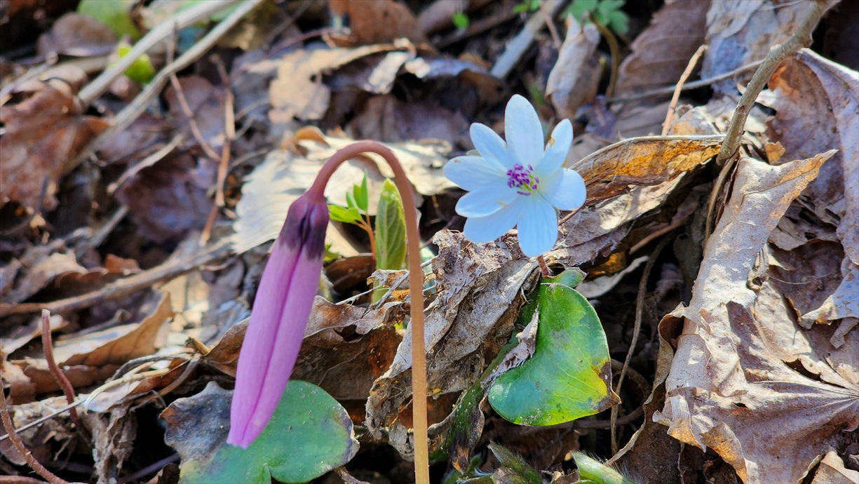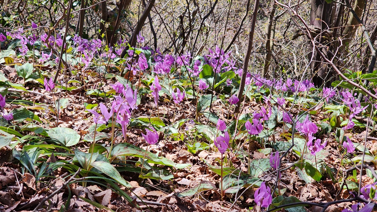例年、雪割草ピークの次に4月10日頃カタクリが最盛期となるが今年は既に終盤の気配でした | ||||