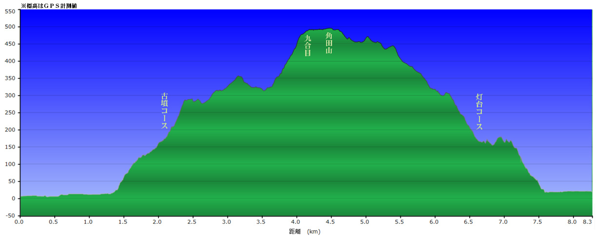 角田山古墳コース高低図 | ||||