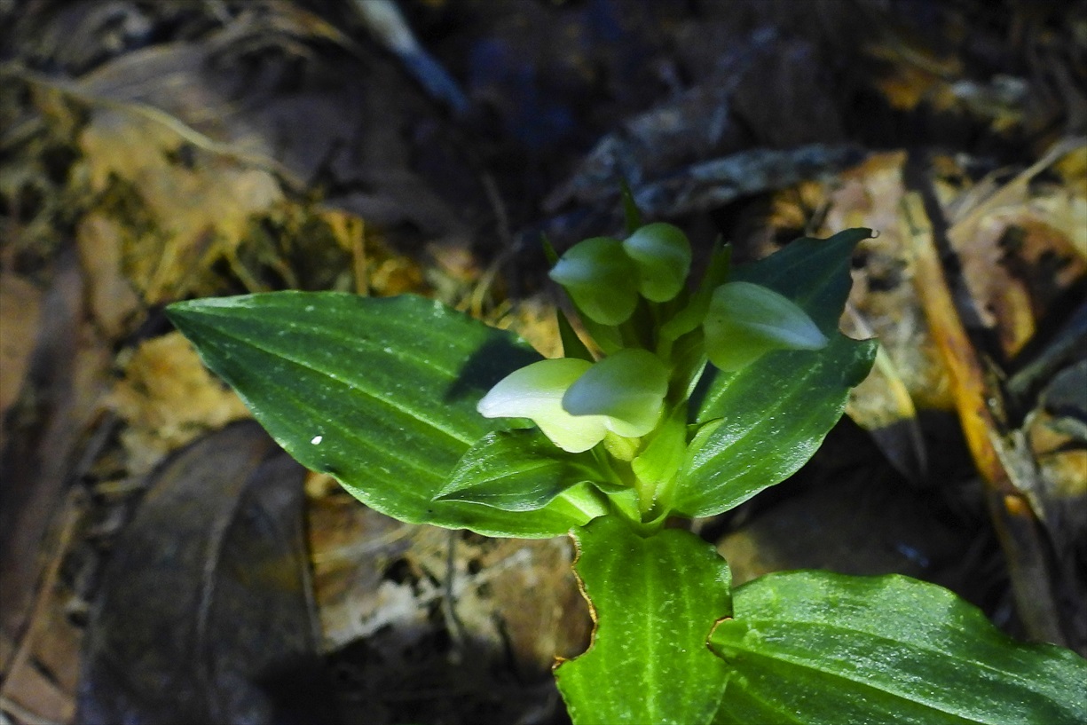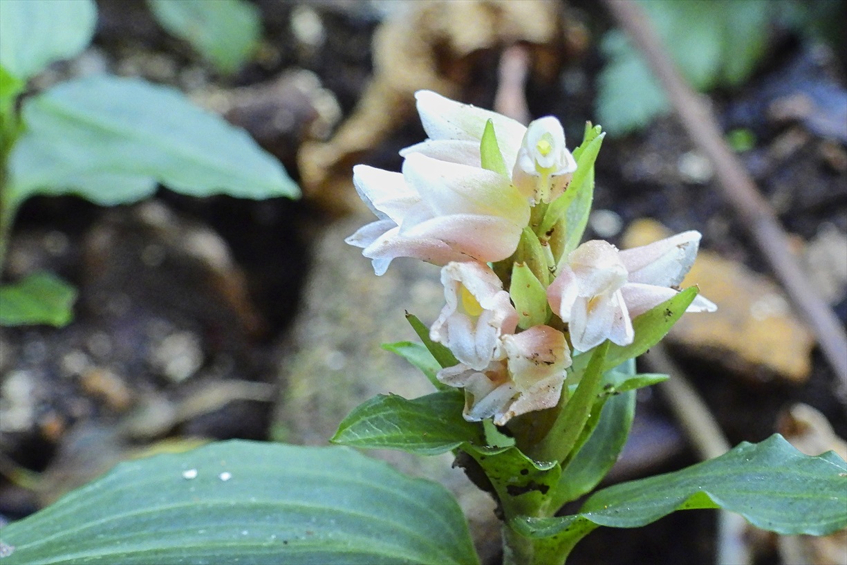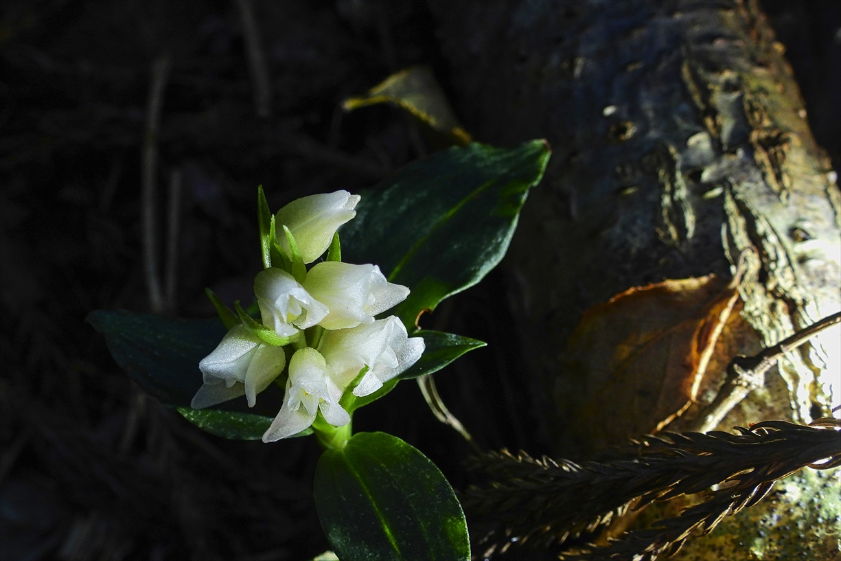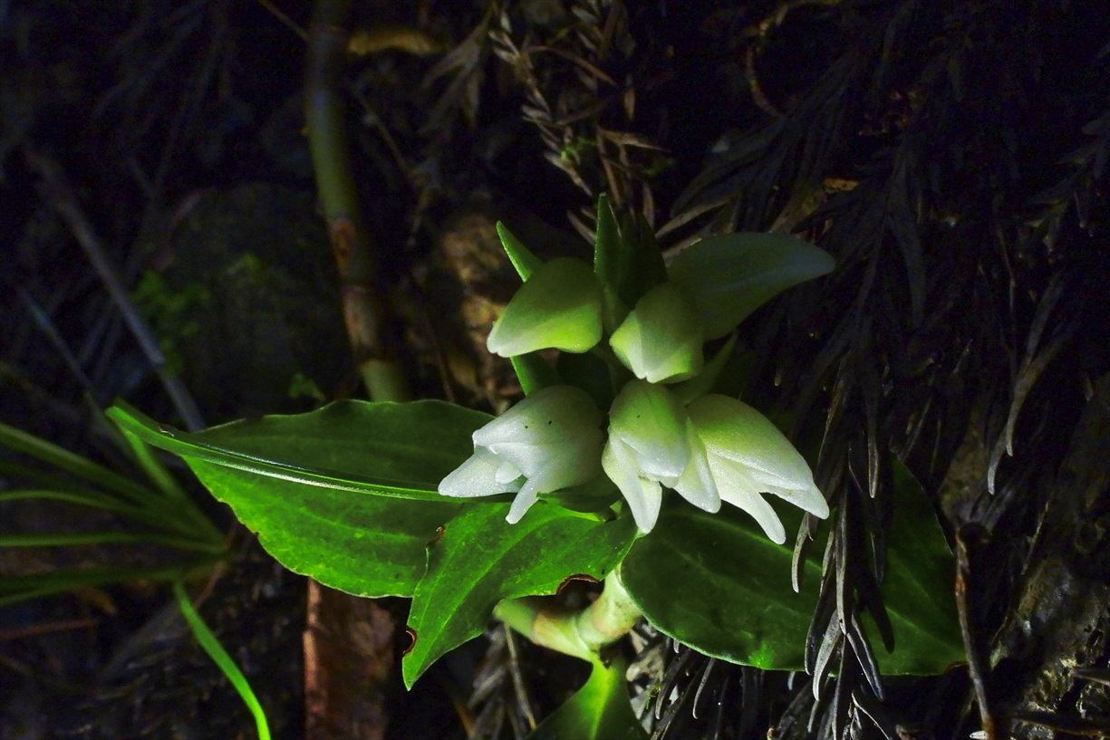 新潟県弥彦村・某所 シロバナアケボノシュスラン |
