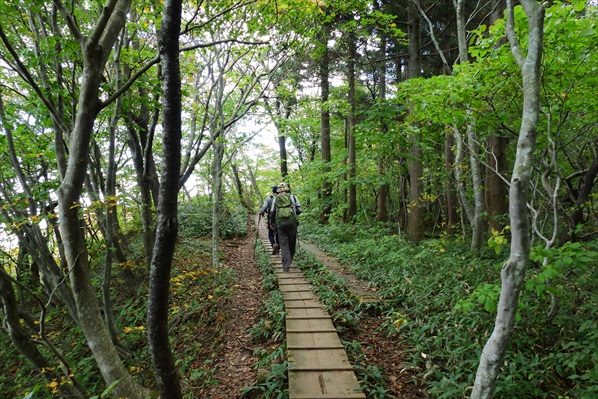 | 上記分岐点から約5分の木道歩きで角田山山頂に到着 | ||||