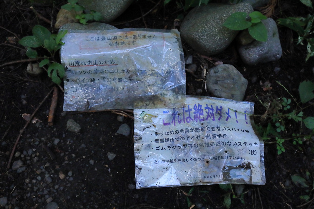 | 此の入沢R・桜尾根Rは私有地のため禁止事項が書かれています 無雪期のスパイク・アイゼン・ゴムキャップ無しのストック・犬などのペット同伴 |