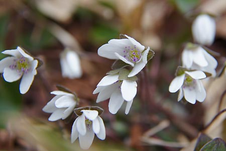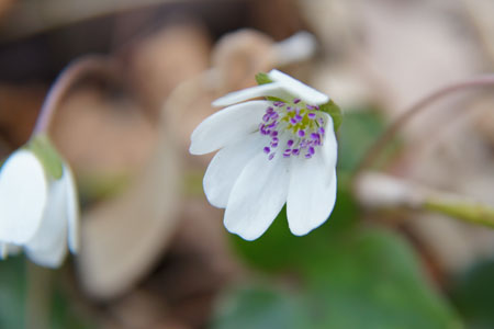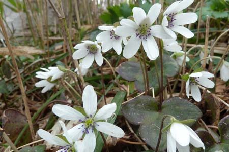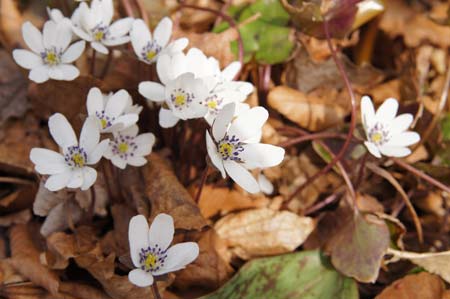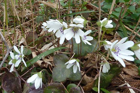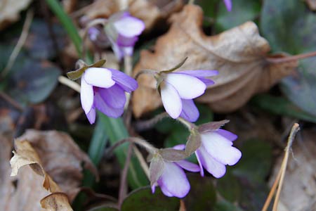 太陽が当たらないと上向きで開花しないため早朝はおじぎをした雪割草が多い | ||||