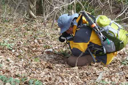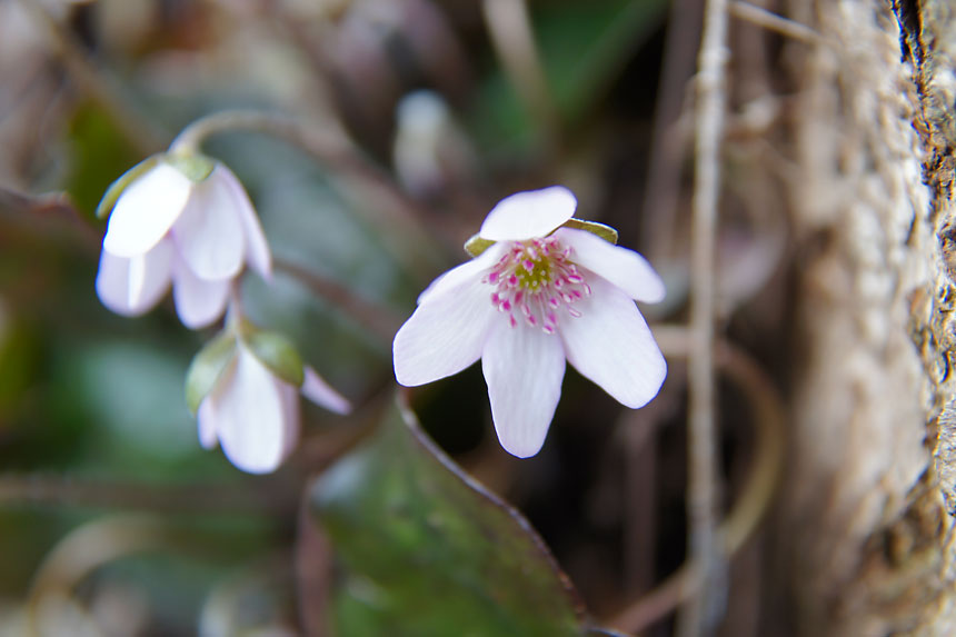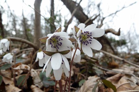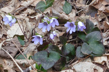 私有地内を歩くので注意事項に従って入山 | 歩き始めてすぐに雪割草群落に出会う | |||