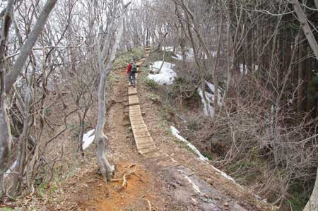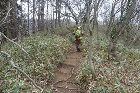 灯台コース分岐点 | 木道の先が角田山山頂だ | |||