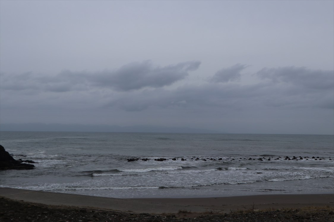 曇天ながら佐渡ヶ島をを視認できる/角田浜海水浴場より | ||||