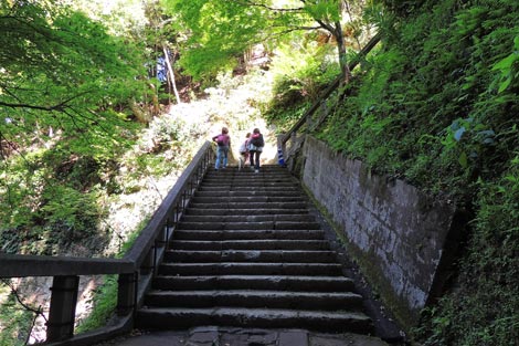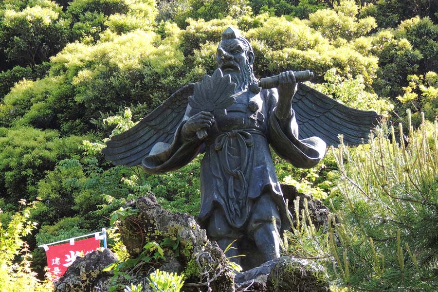 半僧坊本殿石段まわりにたつ烏天狗像/烏天狗というより田舎の腕白小僧って感じかな〜(笑) |