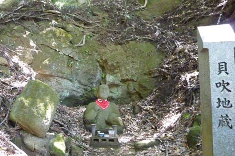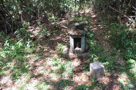 貝吹地蔵手前で斜め右に入る(指導標がないので素通り注意) 天台山 141M 石祠と三等三角点 |