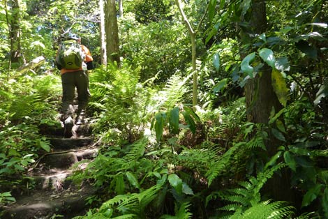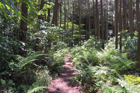 しばらく住宅街を歩くが・・・ | シダ類が生い茂る登山道に一変する | |||