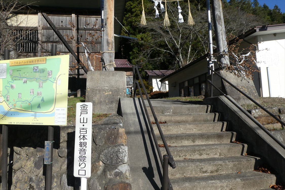 金戸山登山口 京ヶ倉下山後、金戸山登山口の会神社駐車場に移動 |